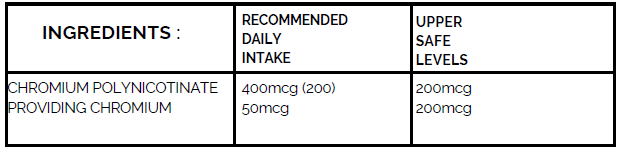 Ingredients: Chromium Polynicotinate, VITB3